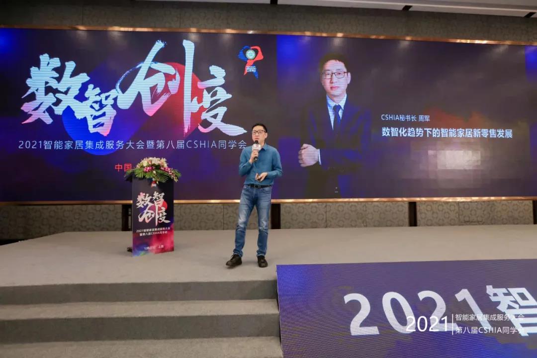 CSHIA秘書長周軍先生首先發(fā)表《數(shù)智化趨勢下的智能家居新零售發(fā)展》主題演講。重點(diǎn)提到,數(shù)智化是當(dāng)下智能家居行業(yè)最為重要的發(fā)展趨勢之一,通過數(shù)字化提升構(gòu)建的信息高速公路能夠很好的將智能家居硬件產(chǎn)品實(shí)現(xiàn)很好的融合與提升,從而助推行業(yè)零售模式的重塑與變革。