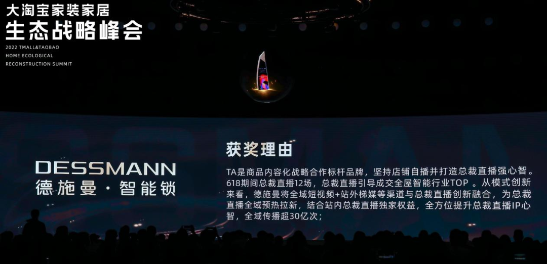 此次峰會,德施曼憑借其鮮活的品牌營銷能力、創新的全域營銷模式接連斬獲“天貓戰略合作品牌獎”、“全域營銷獎”,雙料大獎。