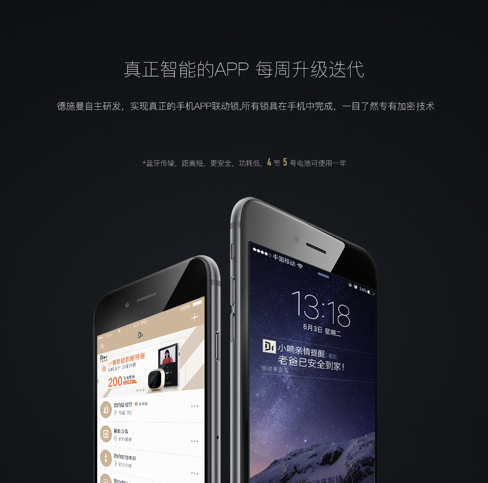 德施曼自主研發,實現真正的手機app聯動鎖,所有鎖具在手機中完成,一目了然專有加密技術。